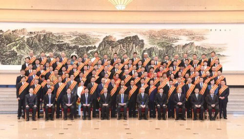 中共中央政治局委員、國務院副總理劉鶴,全國人大常委會副委員長、民建中央主席郝明金,全國政協(xié)副主席、全國工商聯(lián)主席高云龍出席表彰大會,中央書記處書記、中央統(tǒng)戰(zhàn)部部長尤權主持大會。